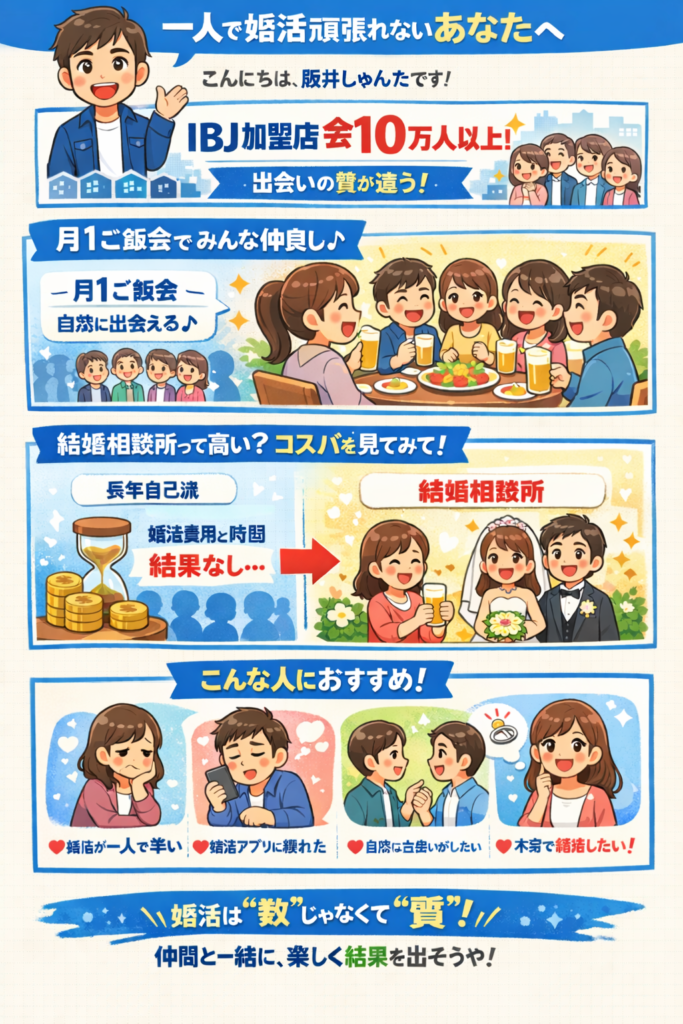 今日は「一人で婚活頑張るの、ちょっとしんどい…」って人に向けて、僕の婚活サポートの魅力を紹介するで。
